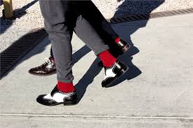 Già, perché se al mattino la necessità è quella di coprirsi fino alle orecchie, in pausa pranzo succede che, uscendo dall’ufficio ci si senta fuori luogo, avvolti in sciarpe e giacche imbottite. Per questo il suggerimento è quello di scegliere, in questi periodi un abbigliamento che potremmo definire “a strati”, così da avere al mattino un’adeguata copertura, ma che sia anche facilmente trasformabile per le ore più calde della giornata. Tutto questo per dire che oggi vorrei parlare di…calzini e forse se la prendo un po’ alla larga è proprio perché in questa stagione si hanno più dubbi nel rispondere alla domanda, quale calzino? Non voglio tediarvi sulla storia del calzino, su come e quando è nato e sulle prime forme di espressione di questo elemento dell’abbigliamento maschile. Facciamo direttamente un salto nella storia ed arriviamo ai giorni di oggi, dove il calzino, a differenza del lontano passato storico, è coperto dai pantaloni, limitandosi ad occhieggiare da sotto il risvolto inferiore.