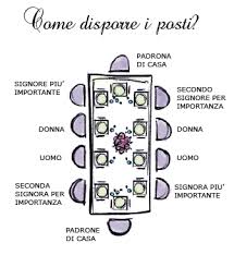 - Il padrone di casa avrà alla sua destra l’ospite donna più importante ed alla sua sinistra la seconda donna per importanza.