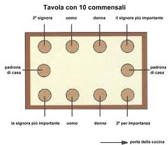 - I padroni di casa siedono a capotavola. L’uomo darà le spalle alla porta. La donna, in mancanza di personale di servizio, siederà al posto più vicino alla cucina.