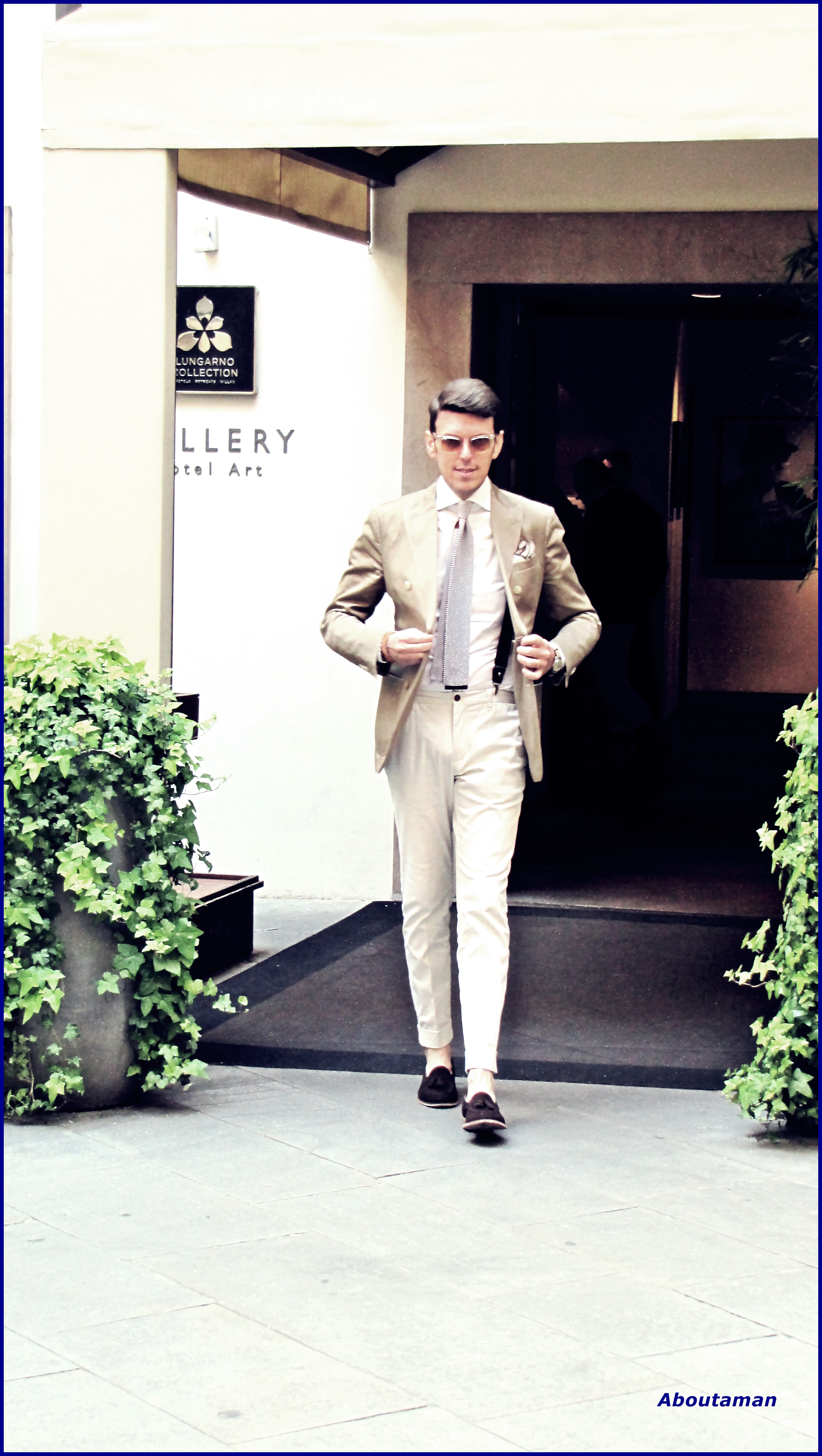 Wearing: Jacket: Lardini linen/cotton/Trousers: Henry cotton’s /Shirt: Erreffe Roma/Tie: Barba Napoli/Loafer: Church’s /Sunglasses: Rayban wayfarer ice pop /Bag: Filofax/Pocket square: Barba Napoli/Watch: Omega seamaster vintage