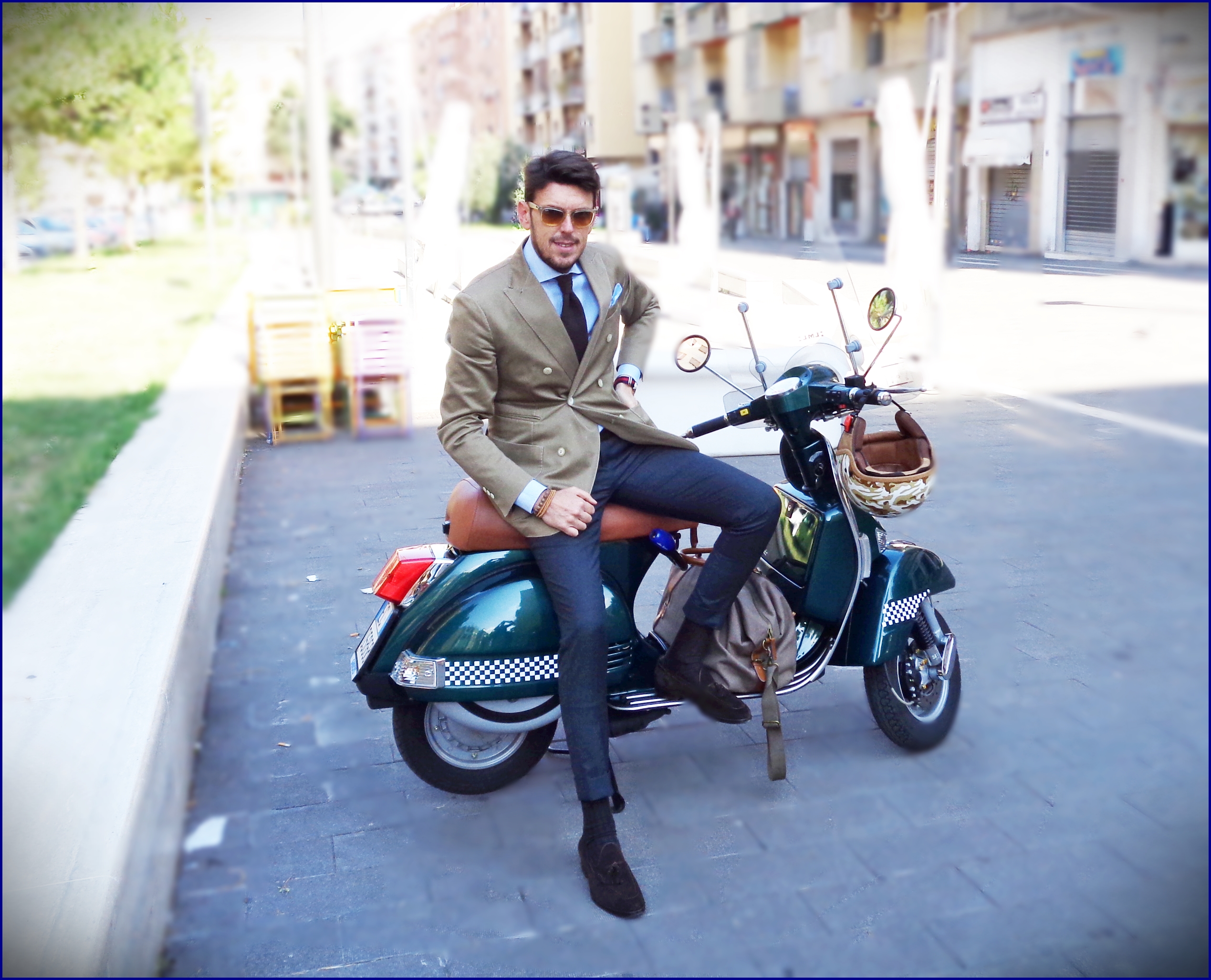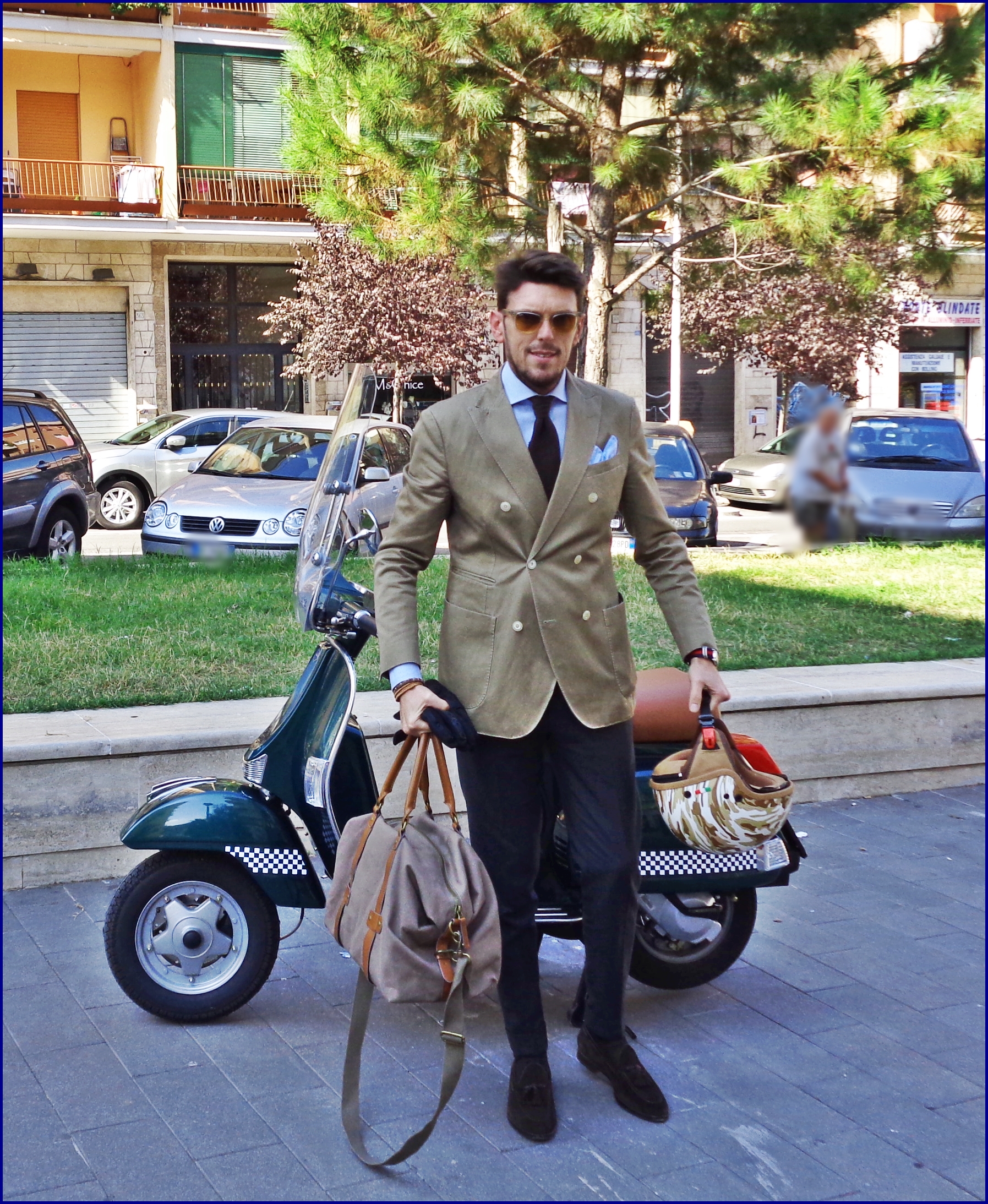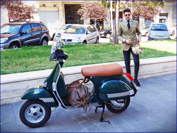 Wearing: //Lardini Jacket //Santoni shoes // Dandy’s trousers //H&M bag //Erreffe shirt //Cenci tie //Rayban sunglasses //Lorenz watch //LML Star automatic 150 Motorbike