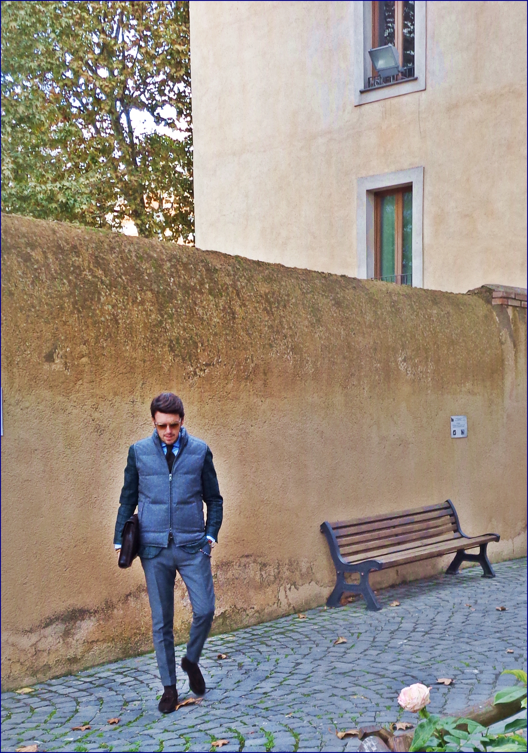Wearing: Pedro del Hiero jacket//Tombolini trousers//Santoni shoes//Cenci tie//8 bag//Kruder sleeveless//Vintage55 vest//Rayban sunglasses//Rolex watch//Erreffe shirt//Gerba chain![]()