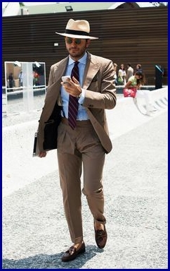 Una volta capito quale tessuto scegliere, passiamo al corretto abbinamento….un abito chiaro, a mio avviso andrà abbinato ad accessori e capi dello stesso colore ma dalle tinte differenti in modo che non si crei uno stacco netto, ma un semplice richiamo cromatico. Ad esempio sotto un pantalone beige non indosseremo mai una scarpa nera ma una tonalità del marrone. Altro modo di abbinare un abito chiaro è quello di far risaltare i colori meno evidenti del tessuto, magari scegliendo una pochette intonata. Personalmente mi piace indossare l’abito chiaro con mocassini a nappina in cordovan, o anche una stringata oxford, dal sapore molto “british”.