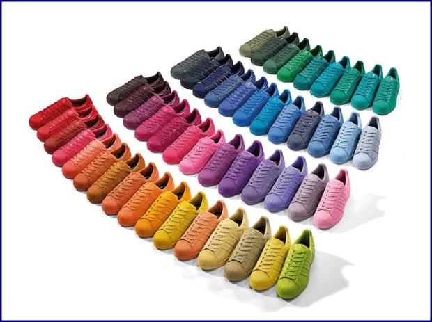 Due icone pop, che condividono l’amore per il colore e lo stile individuale. Uno, Pharrell Williams, artista poliedrico che ha fatto ballare il mondo intero sulle note di Happy. L’altra, la scarpa Superstar, modello iconico del brand adidas Originals. Oggi la sneaker famosa per la sua inconfondibile “shell toe” in punta, si tinge di 50 coloratissime sfumature, ed esprime tutto l’entusiasmo e l’energia di Pharrell Williams, e punta i riflettori sull’importanza di esprimere la propria personalità, (anche) attraverso una scarpa iconica.