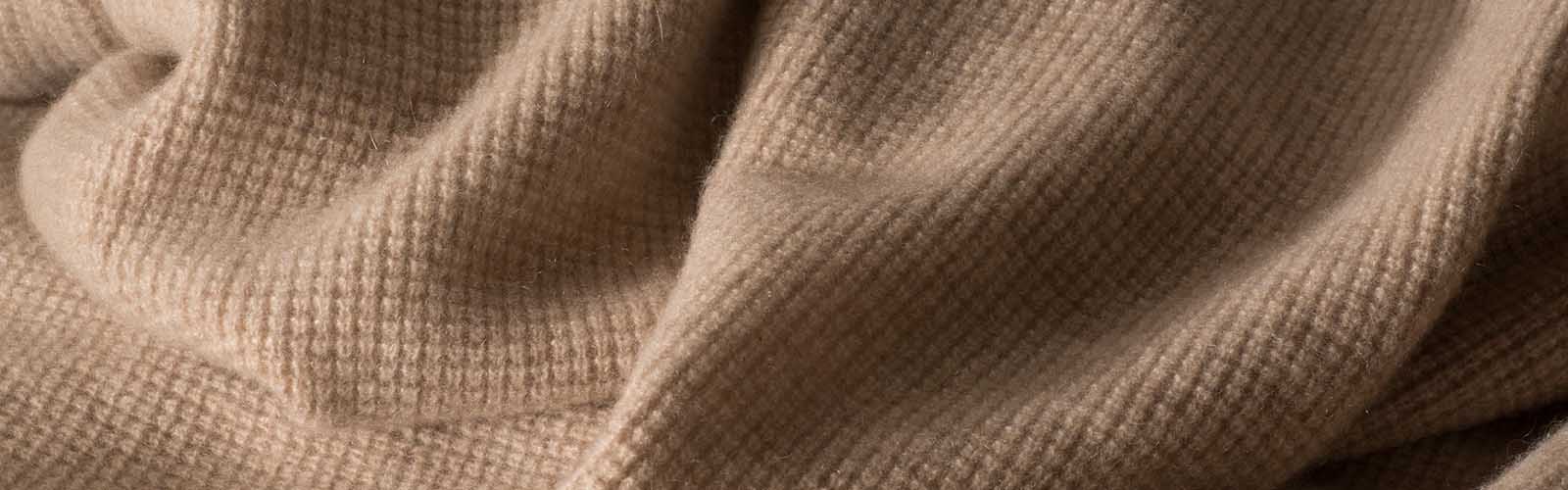 Anche chiamato kashmeer è una pregiatissima fibra tessile formata con il pelo di Capra hircus. La mano del cashmere è morbida, setosa e vellutata, dà una sensazione calda e soffice. La parte più sottile e fine è la peluria del sottomantello ed è chiamata duvet, cioè lo strato inferiore soffice e lanoso; la parte più grossa con peli rigidi e ruvidi proviene dal mantello esterno ed è chiamata giarre. E’ sicuramente il tessuto più pregiato e costoso, e si presta ad utilizzi di capi importanti, quali cappotti o giacche, oppure è utilizzato per la realizzazione di maglioni e cardigan.