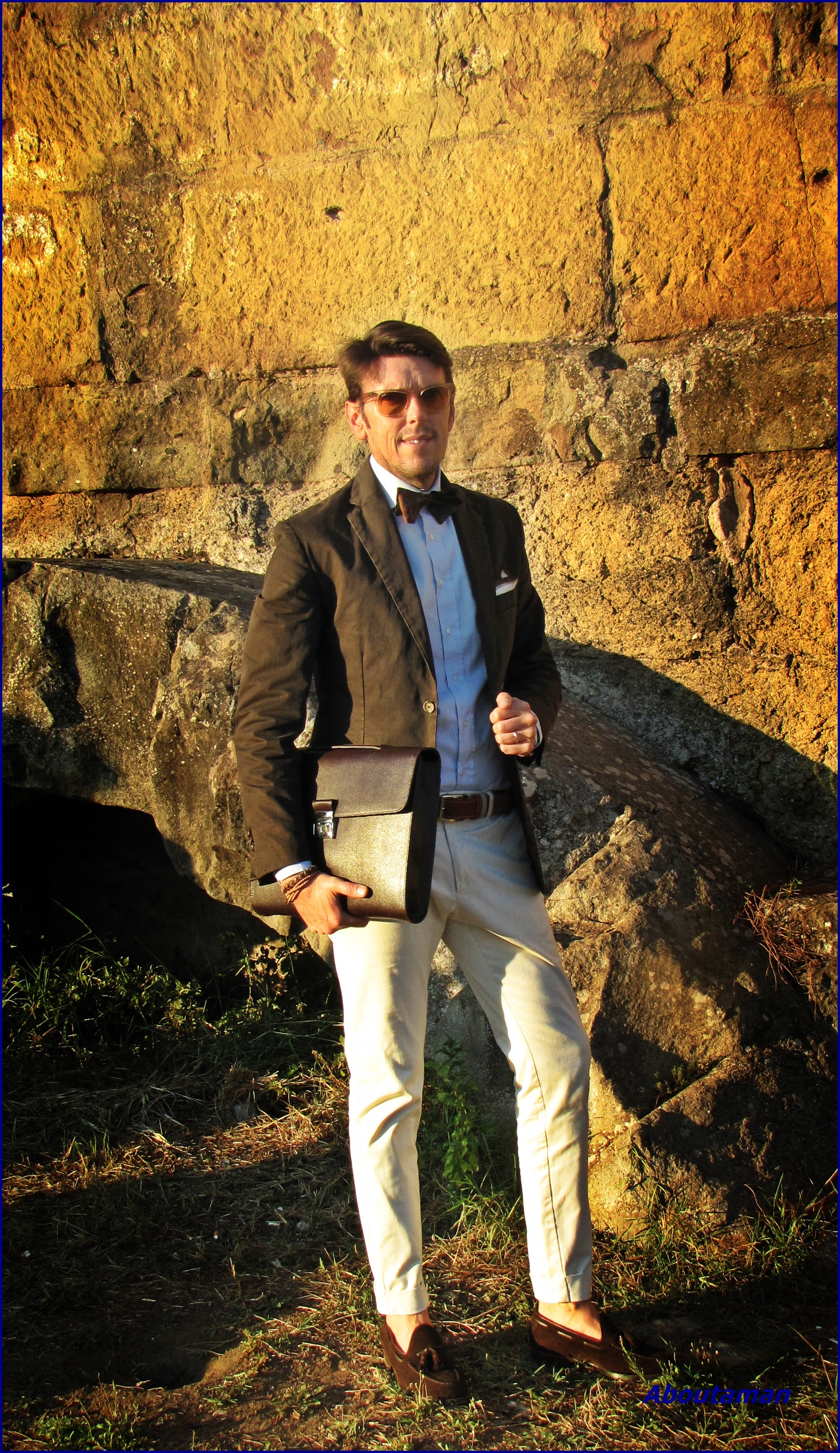 //Soufino Roncacè jacket //Incotex pants // Santoni shoes //Eredi Pisanò belt //Vintage bowtie //Erreffe camicie //Rayban sunglasses
